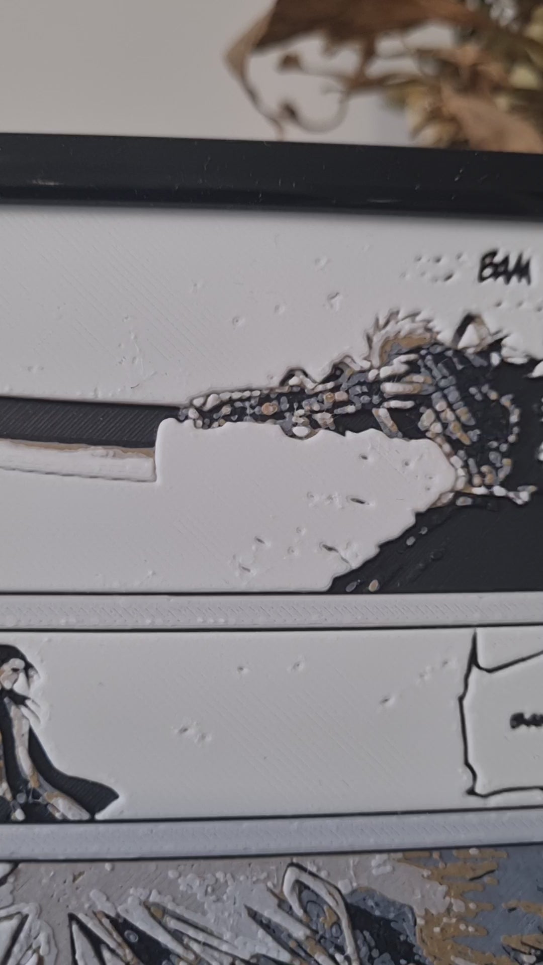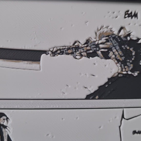 Cette affiche en impression 3D multicolore capture cet instant mythique : Ichigo, silhouette noire et fine, sabre compressé, vitesse décuplée, regard déterminé. Face à lui, Byakuya, digne et glacé, entouré de pétales meurtriers de Senbonzakura Kageyoshi.